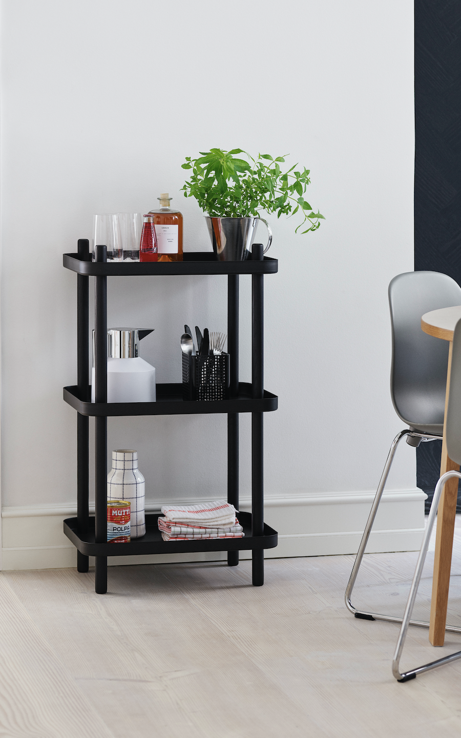 Block has no specific direction and can be used from all four sides. It is a versatile piece of furniture with many different functions in the home. Use Block table as a serving trolley or side table, in the kitchen, as a bedside table, for a home bar or in the children's room, and use the Block shelf in multiple spaces, from your entrance hall or kitchen through to your summer house.